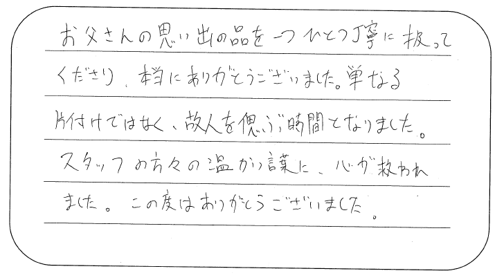 お父さんの思い出の品を一つひとつ丁寧に扱ってくださり、本当にありがとうございました。